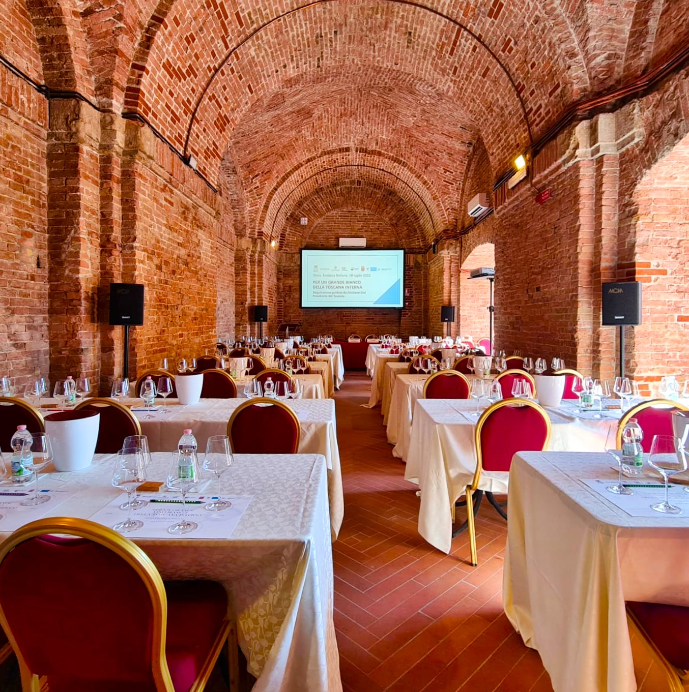 L’Enoteca Italiana Siena riapre le porte della sua rinnovata area eventi & meeting nel prestigioso Bastione San Filippo, offrendo un ambiente versatile per: