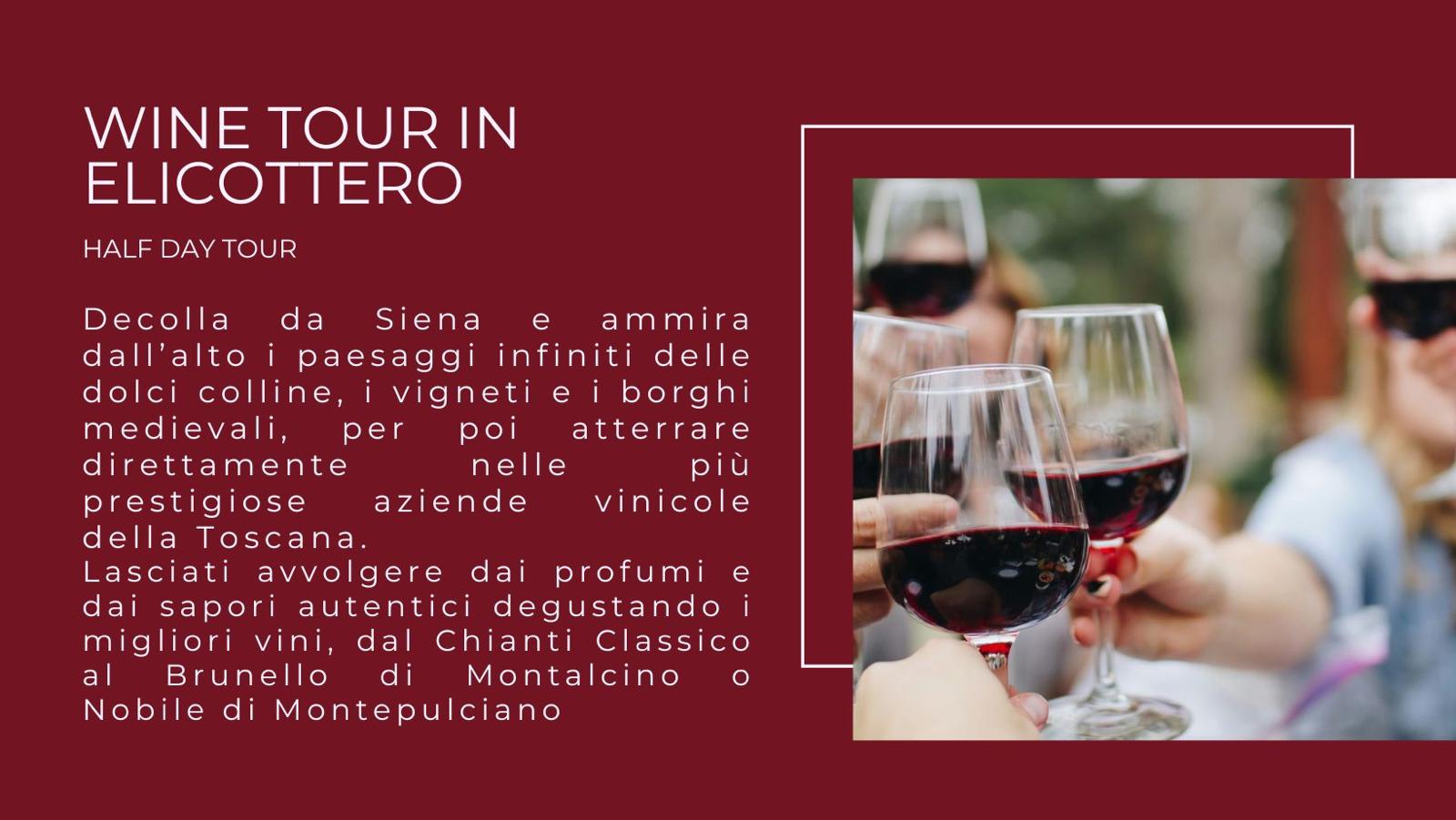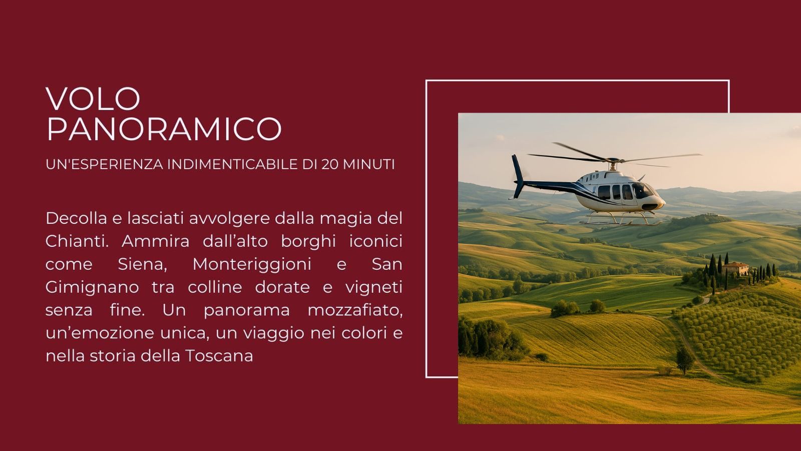 Il servizio di tour in elicottero è offerto da un nostro partner commerciale di fiducia. Enoteca Italiana Siena non organizza direttamente l’attività ma si occupa di segnalare questa esperienza esclusiva ai propri clienti.